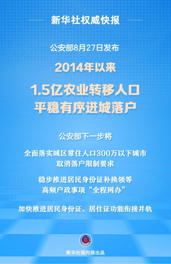 2014年以来共有1.5亿农业转移人口平稳有序进城落户