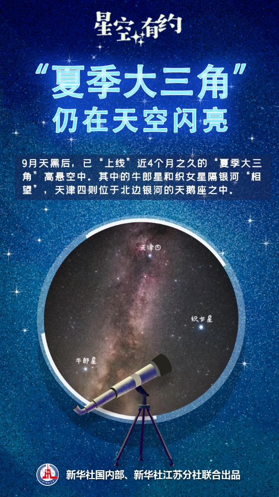 新华社南京8月31日电(记者王珏玢、邱冰清)夏秋交替之际,“天幕剧场”迎来“转场”:春季星空的代表性星星与我们告别,夏季星空的“明星”仍在天幕“舞台”的中央闪亮,同时秋季星空的“主角”已开始登场。