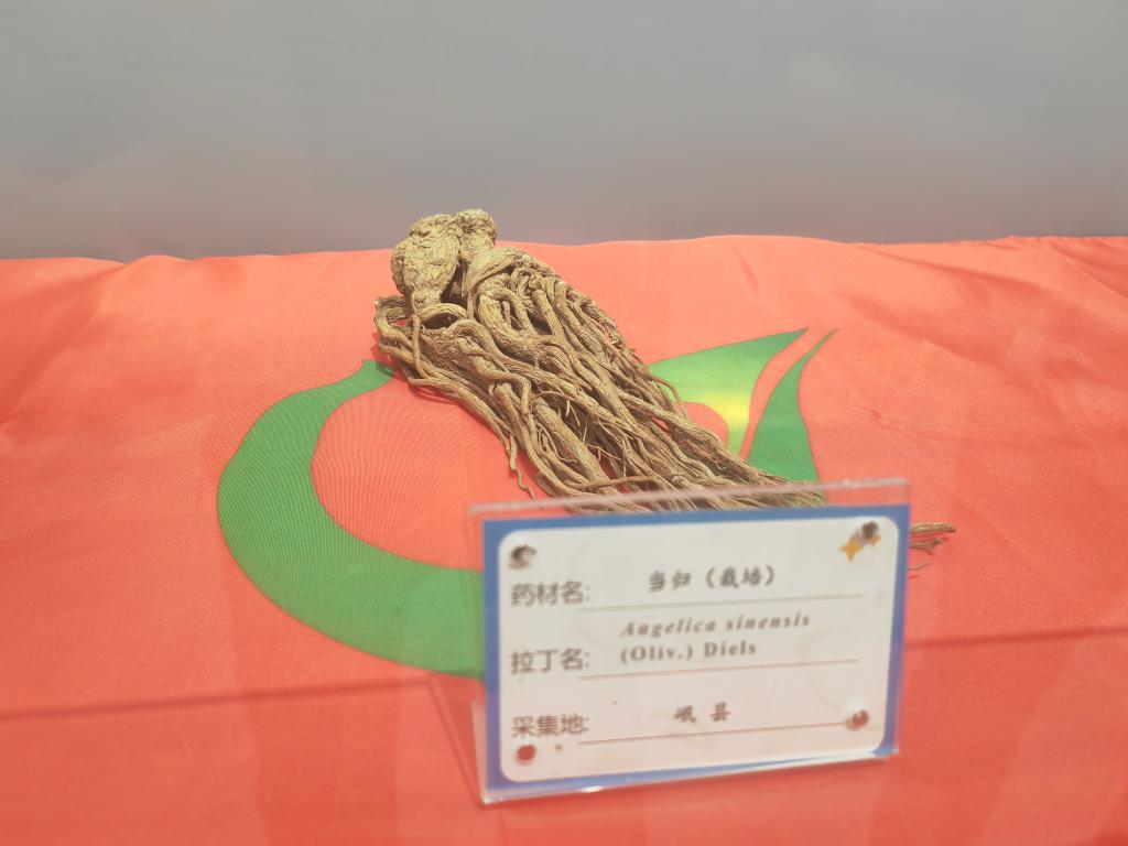 这是8月20日在第四次全国中药资源普查甘肃成果展示馆里拍摄的当归样本。新华社记者 王朋 摄