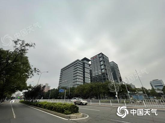 今天早晨,北京天空阴沉,体感微凉。(图/中国天气网 王晓)
