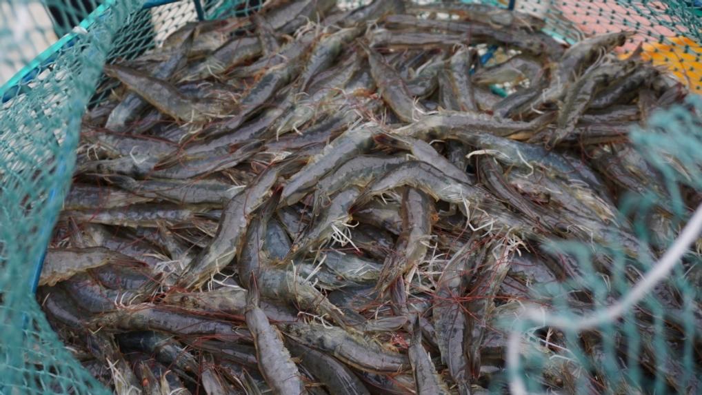 养殖的活虾出塘。