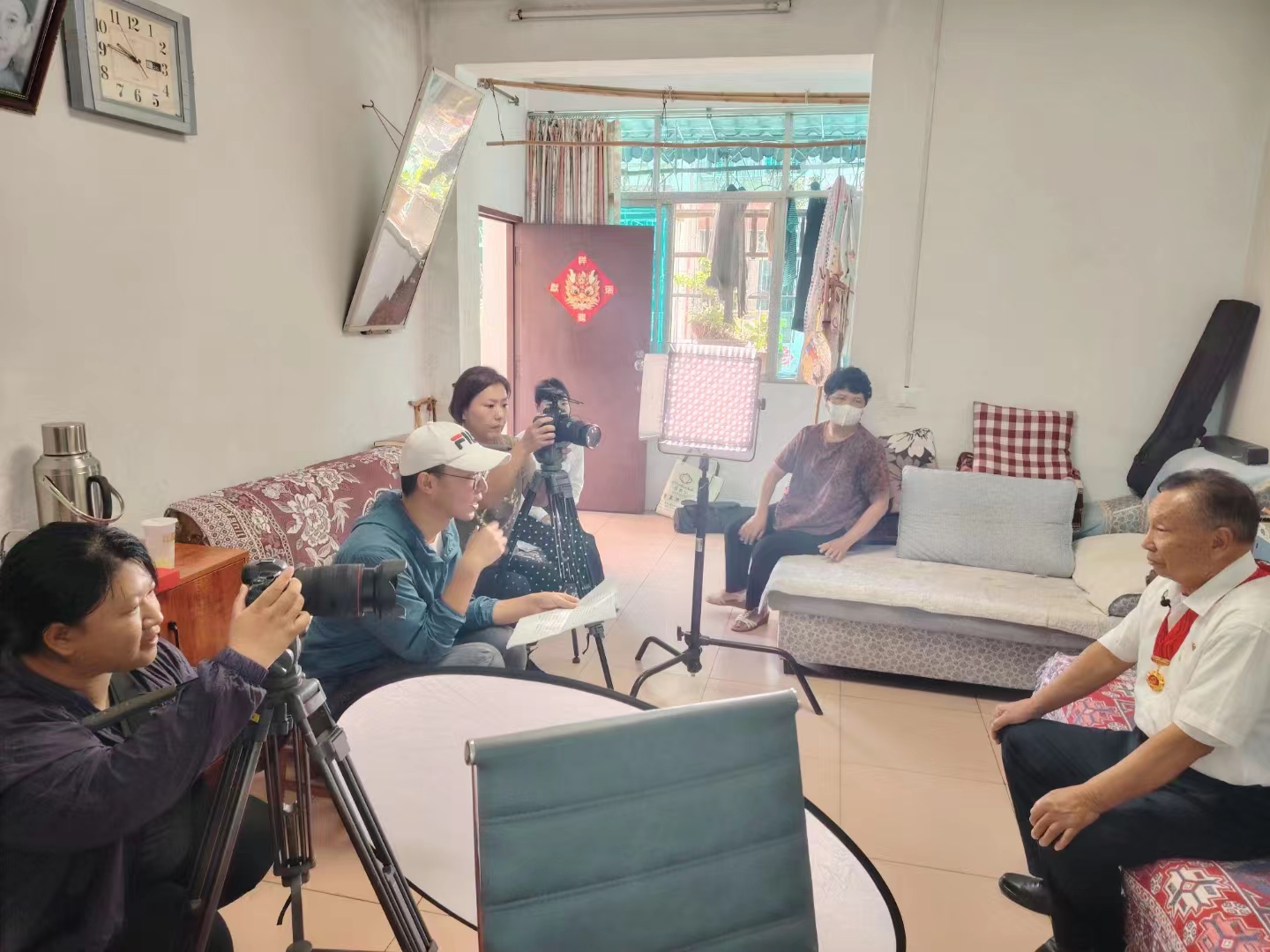 澜沧县融媒体中心 李飞雷(左二) 建党节采访入党50年老党员