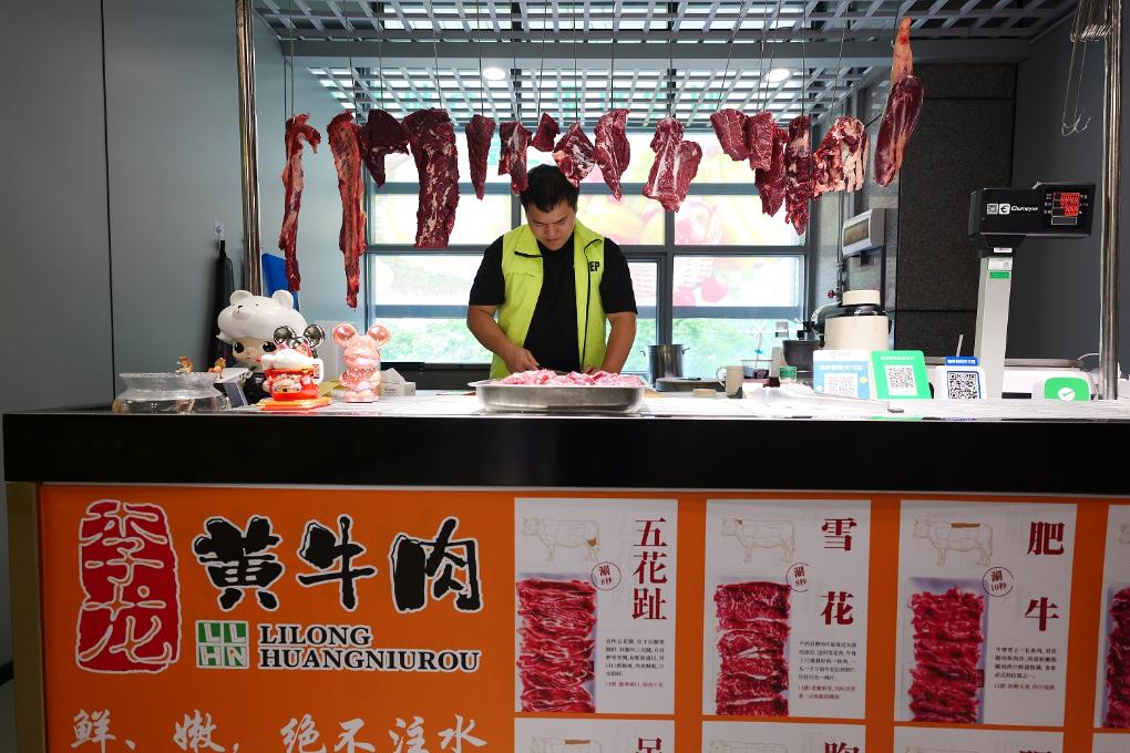 吊龙、匙仁、五花趾……龙泰吉边切边给顾客介绍得清清楚楚,在推出了代炒服务后,他还组建立起了微信会员群。“现在大部分顾客都是从网上下单,有时间就过来拿,没时间我们就炒好给送到家里去。”龙泰吉说,现在摊位的收支基本平衡,后续打算聘请专业厨师为顾客代炒,可能会收取一定的代炒和配送服务费。