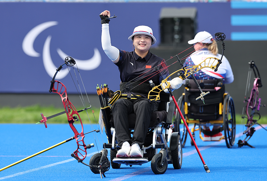 8月31日,在巴黎残奥会射箭女子个人W1级金牌争夺赛中,中国选手陈敏仪战胜捷克选手普尔塔尔·穆西洛娃,夺得金牌。
