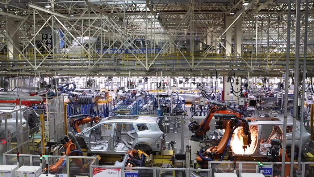 在贵州省贵阳市的吉利汽车贵阳制造基地,一排排机械手精准焊接车身,SPS自动运输小车来回穿梭转运物料,空中的传送平台让每一道工序畅通无阻。