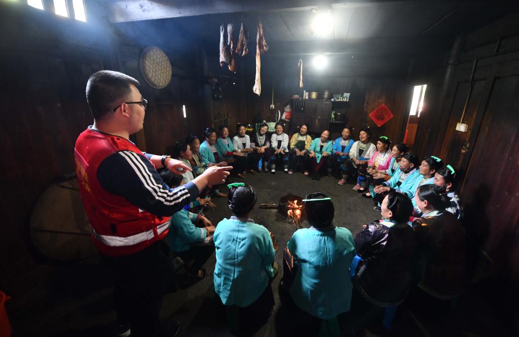 乌英苗寨“双语双向”夜校的妇女们在听课(2020年9月11日摄)。