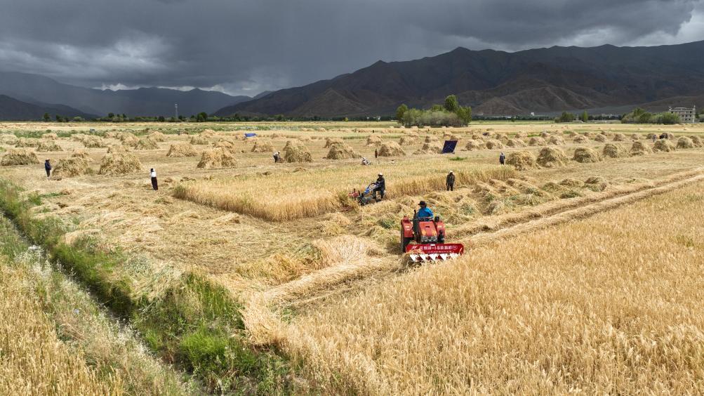 在享有“西藏粮仓”美誉的日喀则,机械化、半机械化收割代替了传统的人力劳作,极大提高了农业生产效率。