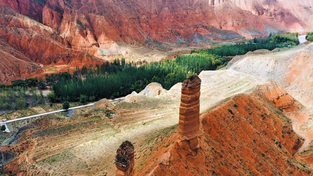 近日,在青海省海东市循化撒拉族自治县,一场秋雨过后,丹霞地貌峰峦叠嶂,与蓝天、植被交相辉映,犹如一幅色彩斑斓的山水画。