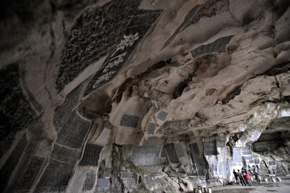 位于桂林市龙隐岩内的桂海碑林,现存有唐代至民国摩崖石刻210余件,并收藏和陈列有桂林历代石刻精品拓片及历代散碑、石雕。新华社记者 陆波岸 摄
