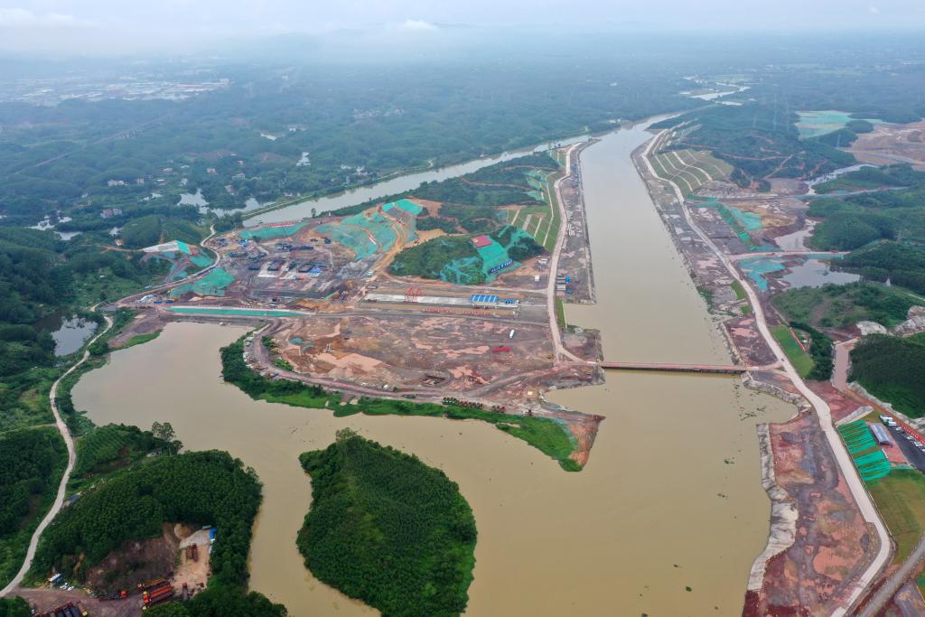 这是施工建设中的广西平陆运河青年枢纽(2023年8月1日摄,无人机照片)。新华社记者 陆波岸 摄