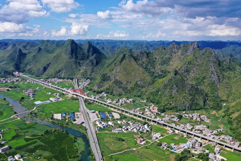 这是广西都安瑶族自治县境内的交通路网(2021年8月31日摄,无人机照片)。新华社记者 陆波岸 摄