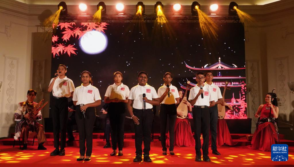 9月16日,在斯里兰卡首都科伦坡,斯里兰卡中学生在“天涯共此时-中秋诗会”活动上表演。新华社记者 伍岳 摄