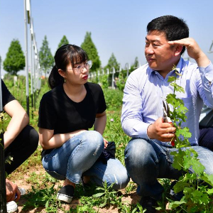 时任葡萄酒学院院长的房玉林(右二)在为学生讲解葡萄管理技术。新华社记者 邵瑞 摄