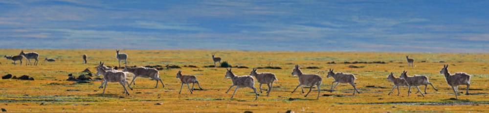 奔跑在色林错国家级自然保护区申扎县片区里的藏羚羊(2024年8月26日摄)。张汝锋摄