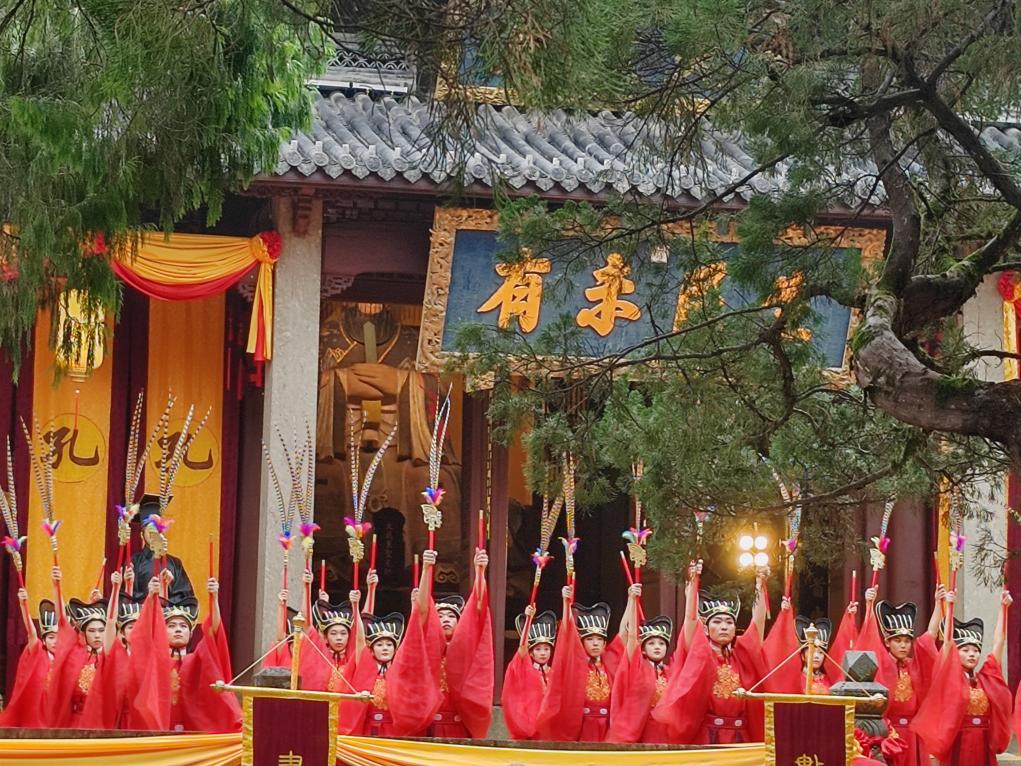 衢州南孔祭典9月28日上午举行,图为孔子南宗家庙大成殿前的宋代释奠礼表演。新华社记者 冯源 摄