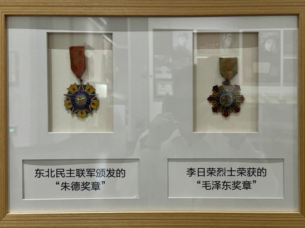 东北烈士纪念馆收藏的“毛泽东奖章”“朱德奖章”。(该馆供图)