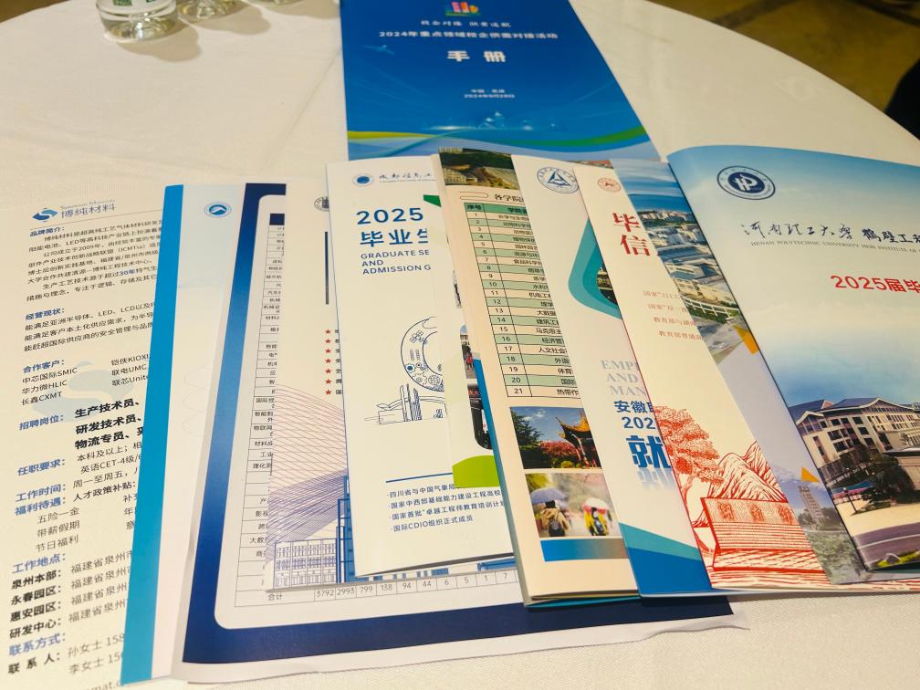 这家总部在福建的国家高新技术企业,正在筹备新建两个厂区,看到这些高校主动提供的学校宣传册,许勇波对这两个厂区未来的员工招聘充满信心。