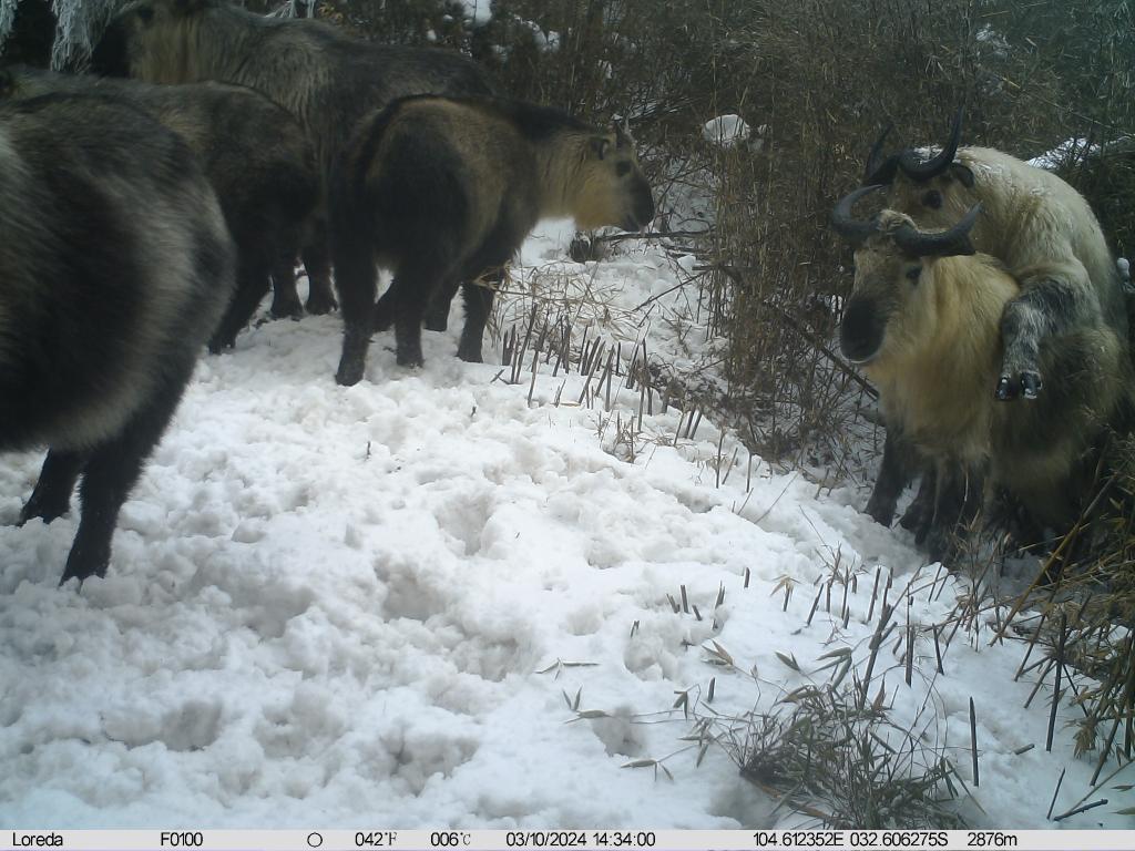 图为2024年3月,红外相机在平武县拍摄的一群野生羚牛。(受访者供图)