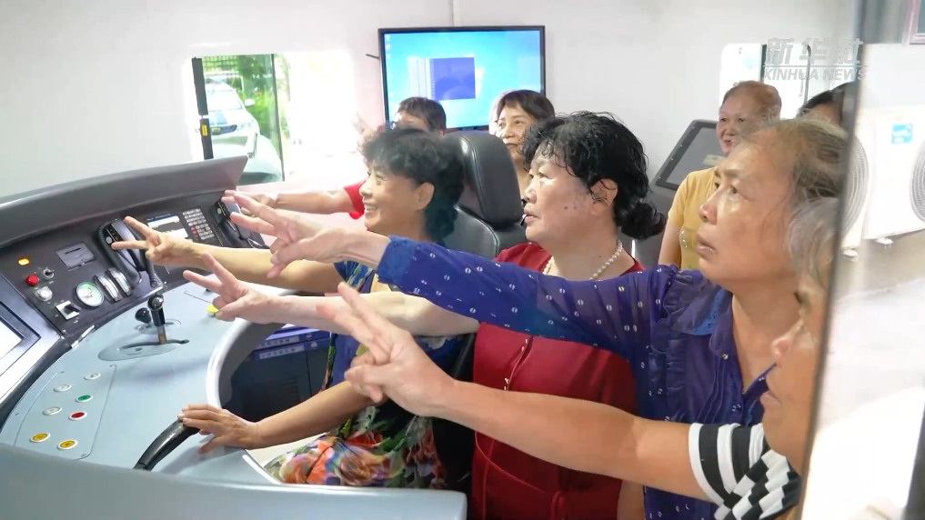 国庆节前夕,广西第一代铁路女司机9位成员再次相聚,回到曾经工作过的地方,并在动车模拟驾驶舱如愿“开”上“复兴号”。