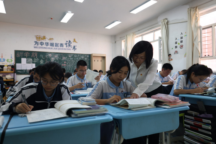 图为姜莉给学生讲题。