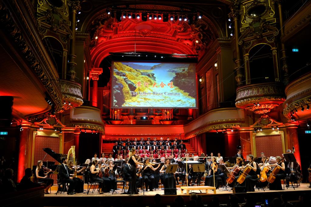 中华人民共和国成立75周年之际,由八个乐章组成的《黄河大合唱》在瑞士日内瓦维多利亚音乐厅唱响。全曲演出时长40多分钟,现场观众对每一乐章都报以热烈掌声。瑞士记者俱乐部前主席居伊·梅唐说,这场令人震撼的演出让他深深感受到中国人民自强不息的精神。瑞士观众卡琳·勒雷舍说:“《黄河大合唱》唱的是爱国情怀。中国人民热爱自己的国家,我们也如此,我深受感动。祝福中国!”