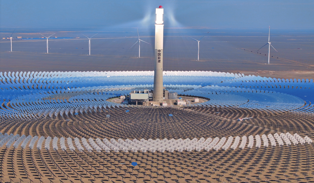 位于新疆哈密市伊吾县淖毛湖镇的国家光热示范项目——熔盐塔式50兆瓦光热发电站(2024年9月12日摄)胡虎虎摄/本刊