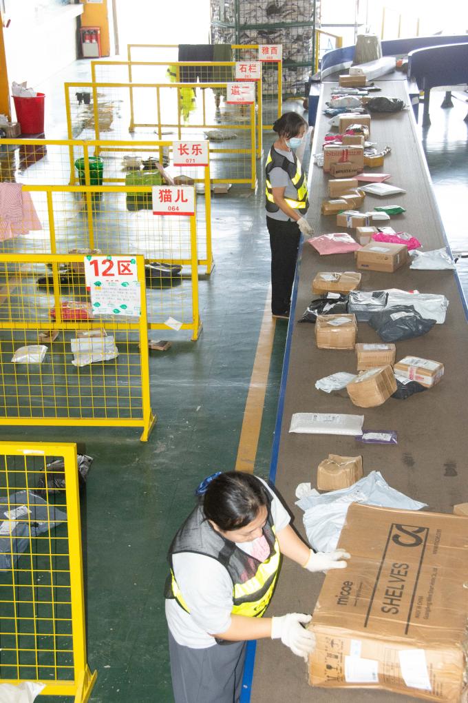 工作人员在花垣县客货邮邮件处理中心分拣包裹。新华社记者柳王敏 摄