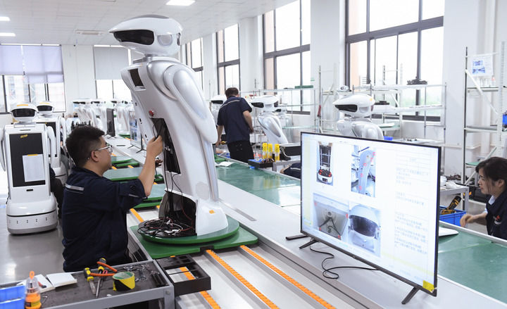 2024年5月27日,在宁波尚闻科技集团有限公司,工作人员在装配机器人。新华社记者 翁忻旸 摄