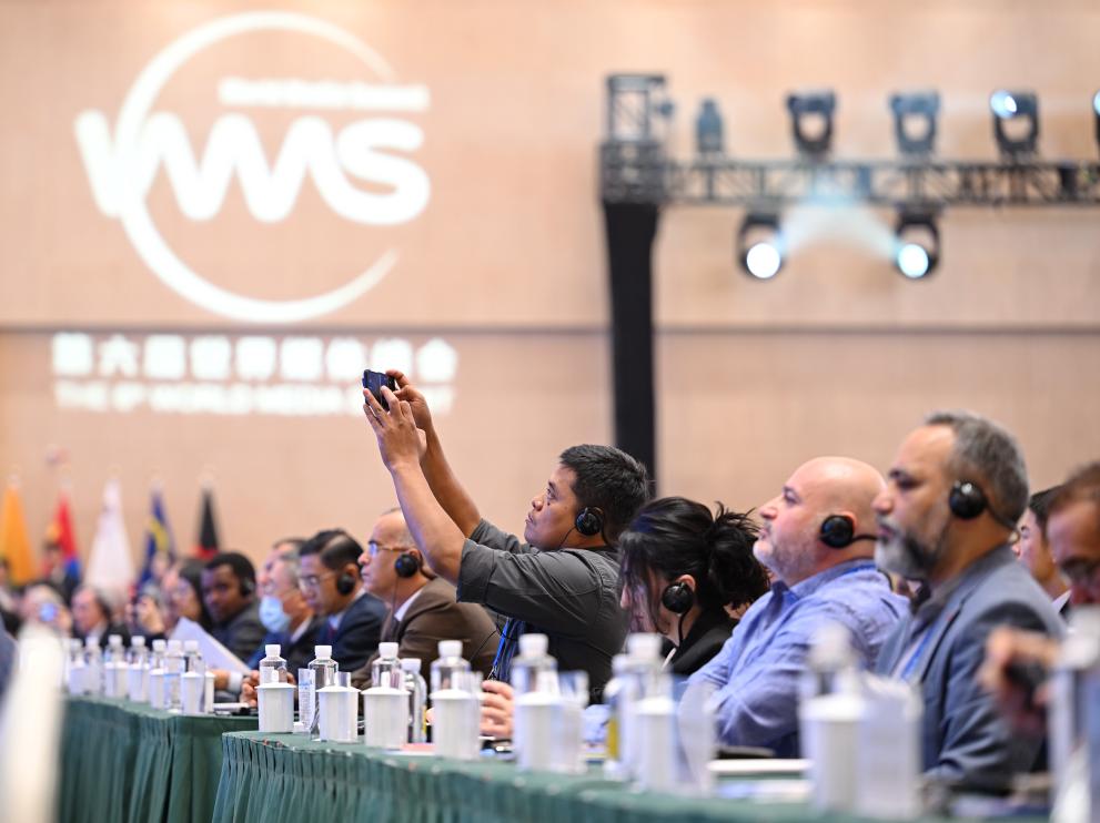 10月14日上午,以“人工智能与媒体变革”为主题的第六届世界媒体峰会在乌鲁木齐开幕。新华社记者牟宇摄