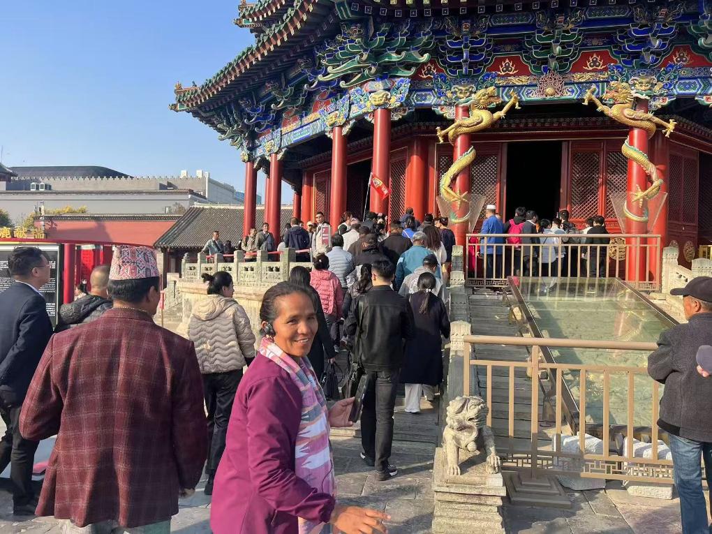 尼泊尔蓝毗尼省拉普提自治乡乡长普拉卡什·比斯塔参访沈阳故宫时,一边认真聆听历史故事,一边用镜头捕捉古老建筑的独特风采。他感慨道:“东北文旅的活力和丰富的体验令人印象深刻,我将把这些经验带回尼泊尔,推动两国文旅行业的合作发展。”