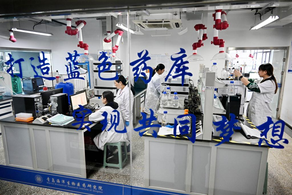 2024年10月21日,中国海洋大学浮山校区海洋医药研究院,研究人员在实验室工作。