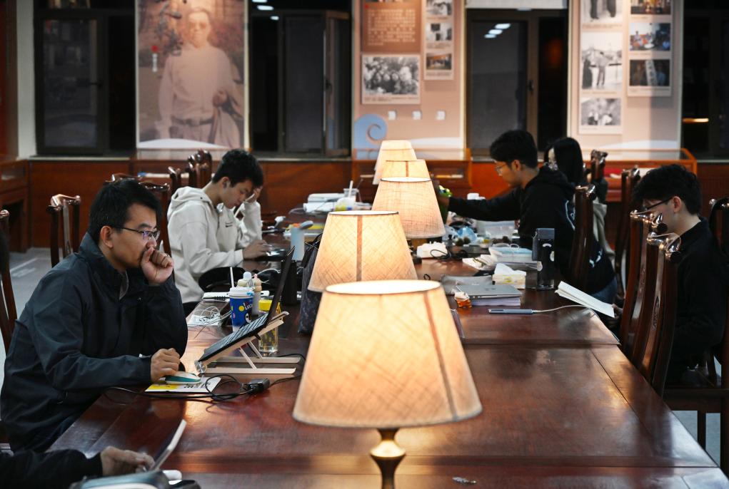 2024年10月21日,中国海洋大学崂山校区,学生在图书馆上自习。