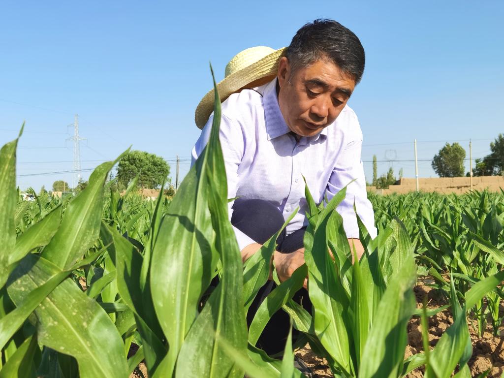 2020年,赵久然在甘肃的玉米制种基地查看亲本自交系生长情况。(受访者供图)