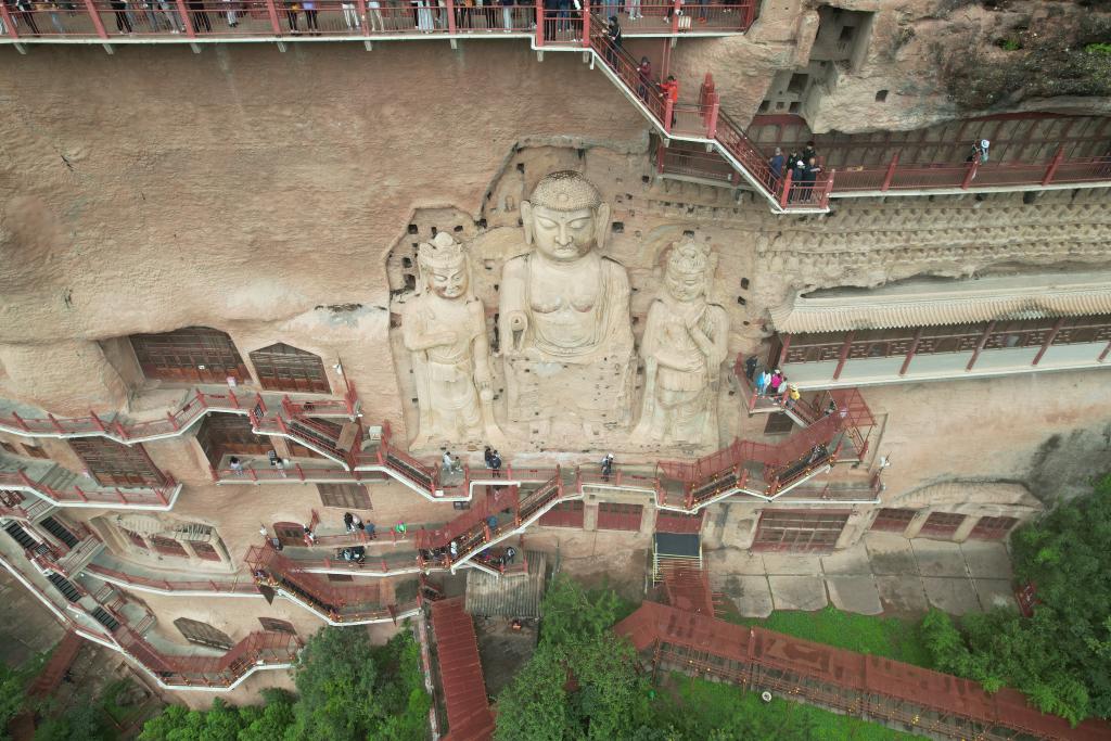 如今,麦积山石窟作为“丝绸之路:长安—天山廊道的路网”的遗产点之一被列入《世界遗产名录》。各类大型论坛、展览在此举办,越来越多中外游客、研学团队登上栈道,在与塑像的“对话”中感受跨越历史的文化共振。
