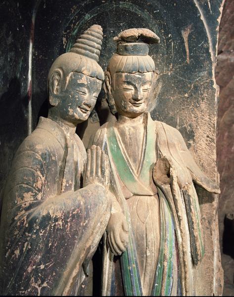 麦积山石窟保存的造像以彩塑为主,全面展示了我国古代彩塑发展演变过程。因有许多灵动多姿、各有特点的微笑塑像,也被叫作“微笑佛国”。