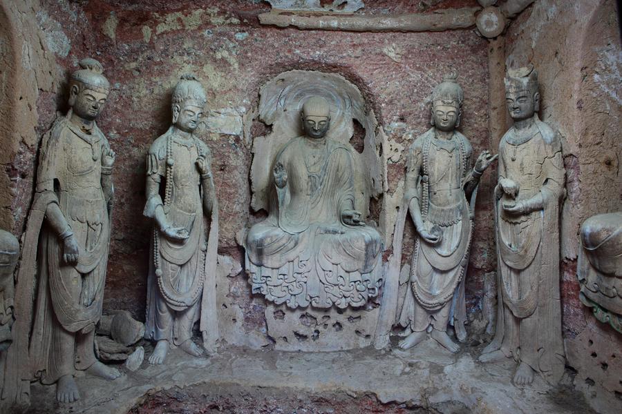 图为麦积山石窟第062窟正壁的佛与菩萨造像。新华社发