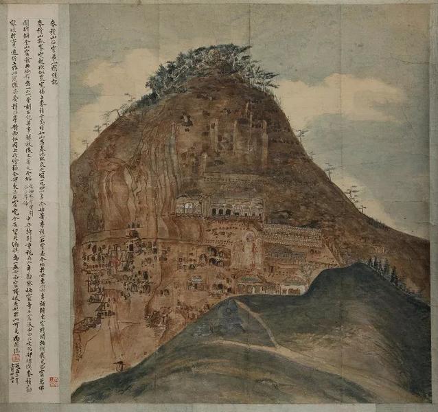图为冯国瑞绘制的麦积山石窟全景。新华社发