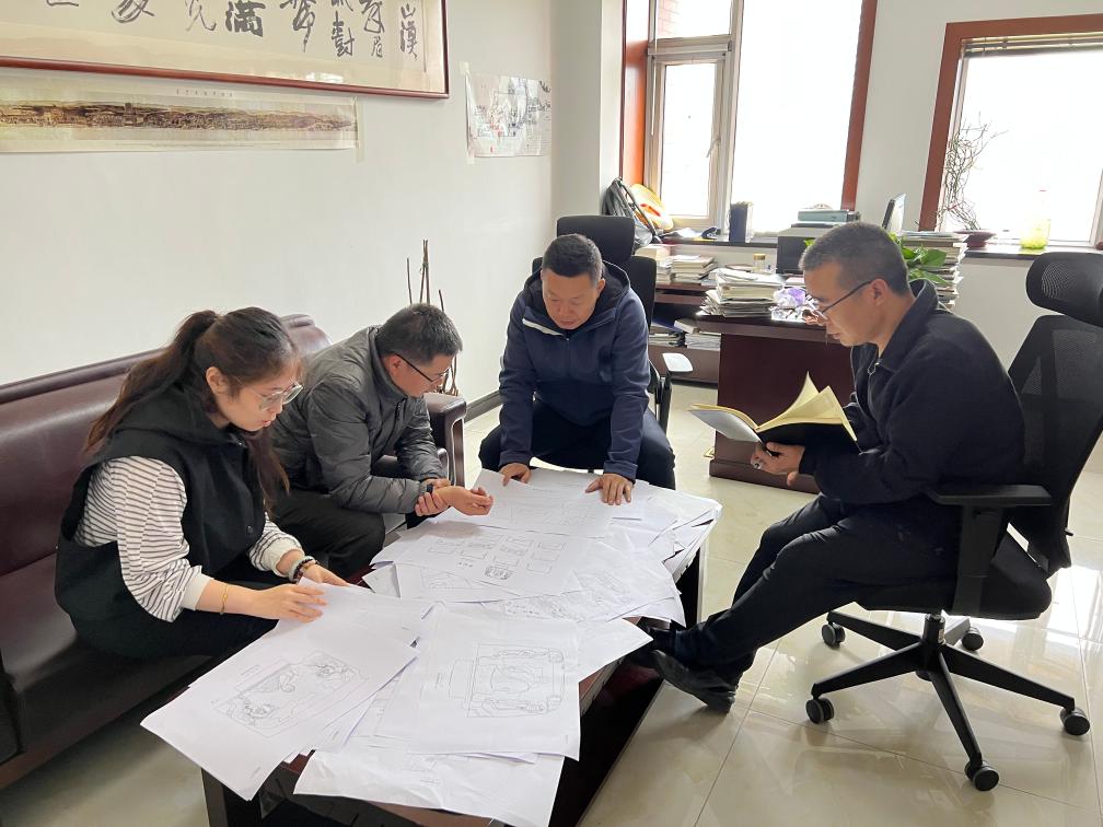 麦积山石窟艺术研究所的工作人员正在核对考古报告测绘图。新华社发