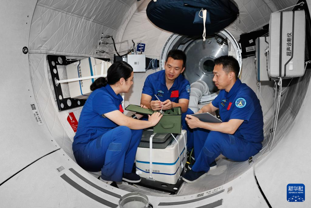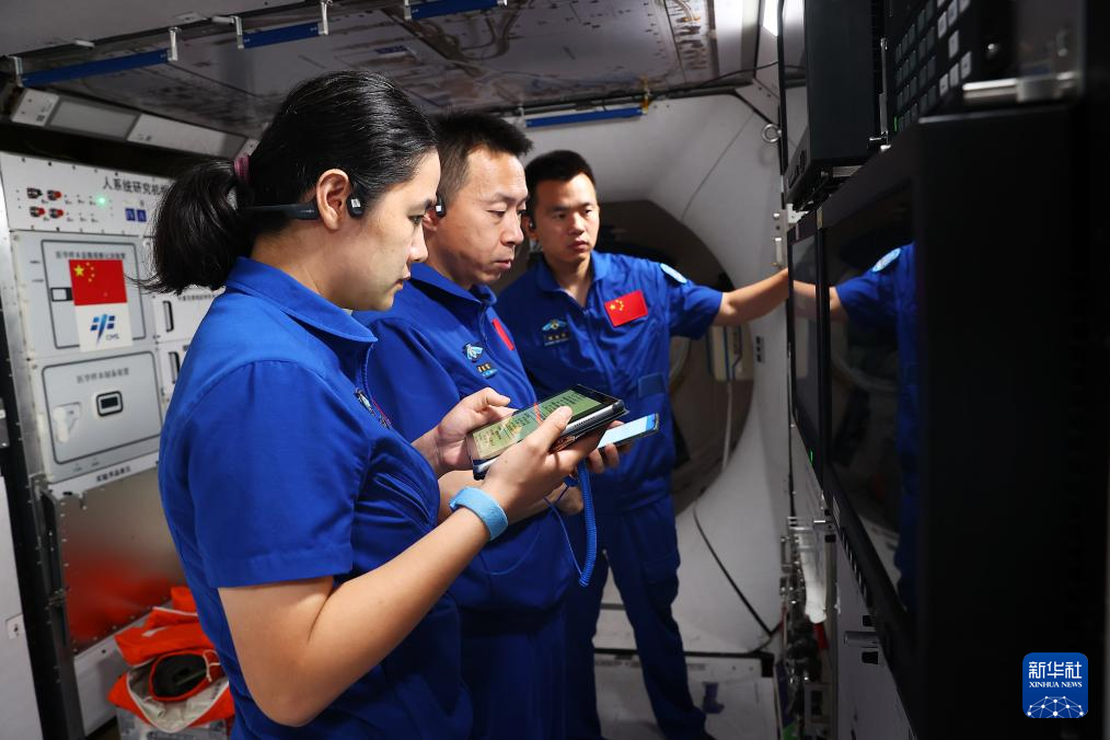 神舟十九号航天员乘组进行核心舱操作训练(2024年6月17日摄)。新华社发(徐部摄)