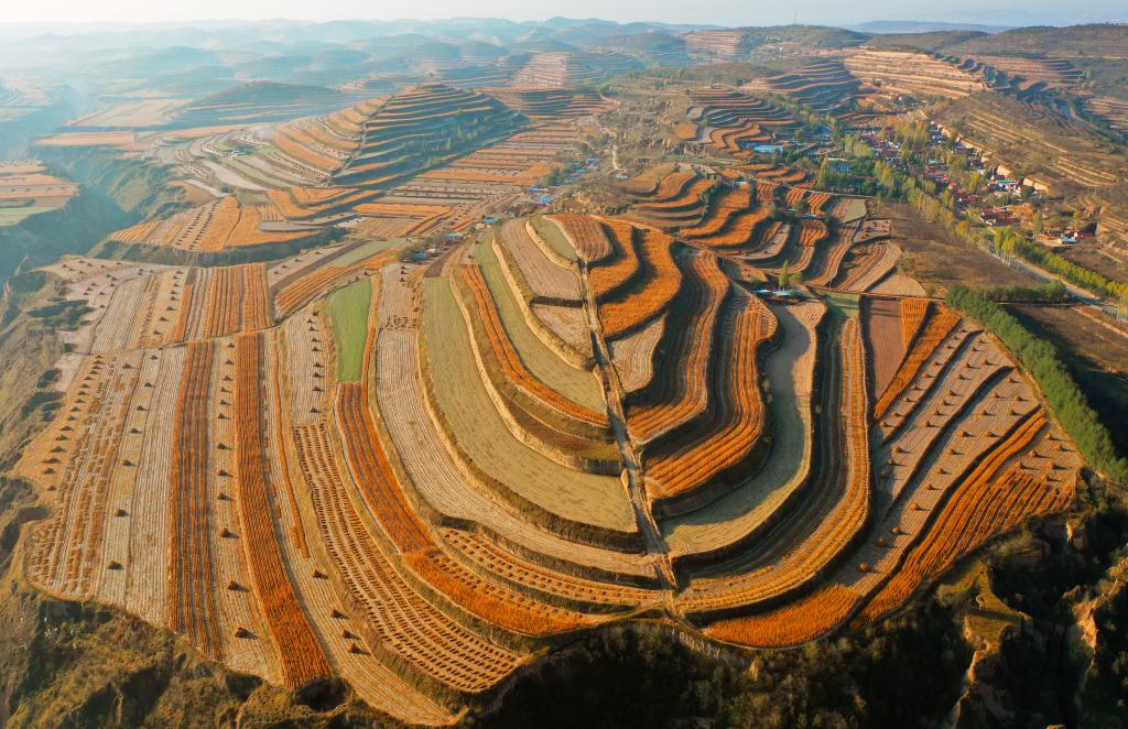 彭阳县多彩梯田勾勒出如画秋景。新华社发