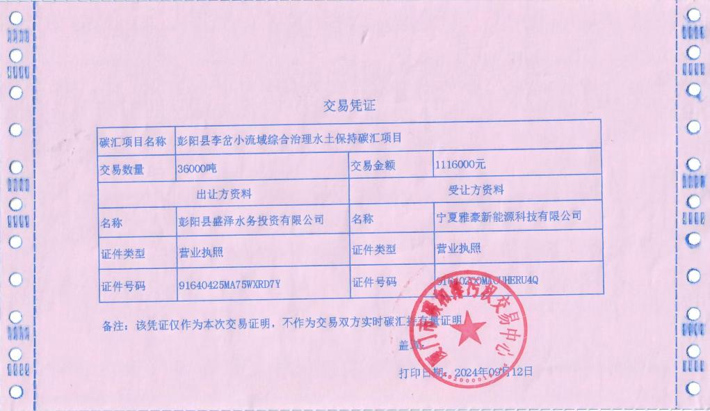 今年9月12日,彭阳县完成了黄河流域水土保持项目碳汇交易的首单签约。作为水土保持项目碳汇出让方的彭阳县盛泽水务投资有限公司与宁夏雅豪新能源科技有限公司签订协议,交易水土保持碳汇3.6万吨,总金额111.6万元。交易收益将反哺彭阳县县域水土保持及生态保护修复项目建设。