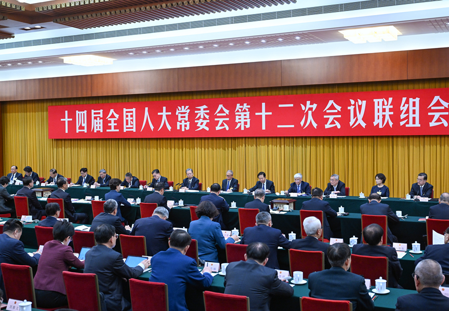 11月7日上午,十四届全国人大常委会第十二次会议在北京人民大会堂举行联组会议。赵乐际委员长出席会议。新华社记者 饶爱民 摄