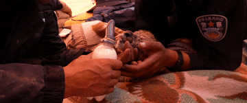 进山的第七天,巡山队员在卓乃湖附近发现了一只刚出生的小羊。这些“钢铁硬汉”,面对幼小生灵,一秒化身温柔“奶爸”。