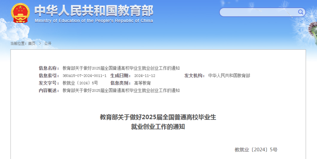 记者11月13日从教育部获悉,教育部近日印发通知,部署做好2025届全国普通高校毕业生就业创业工作。通知提出实施2025届全国普通高校毕业生就业创业促进和服务体系建设行动,全力促进高校毕业生高质量充分就业。