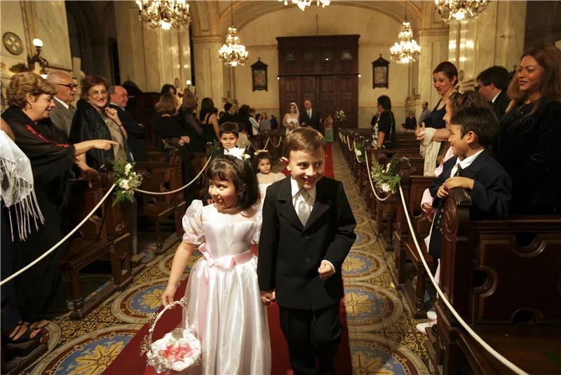 2005年12月18日,在乌拉圭首都蒙得维的亚举行的一场教堂婚礼上,两名花童的表情让人忍俊不禁。姚大伟摄