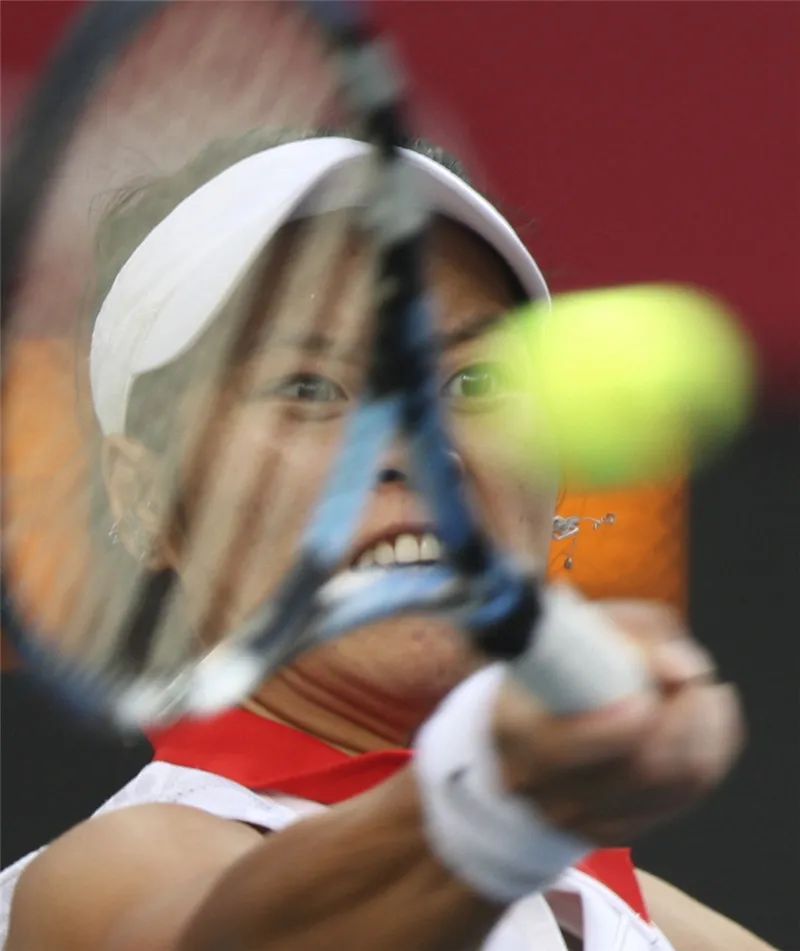 2008年8月16日,网球运动员李娜在北京奥运会网球女单半决赛中。