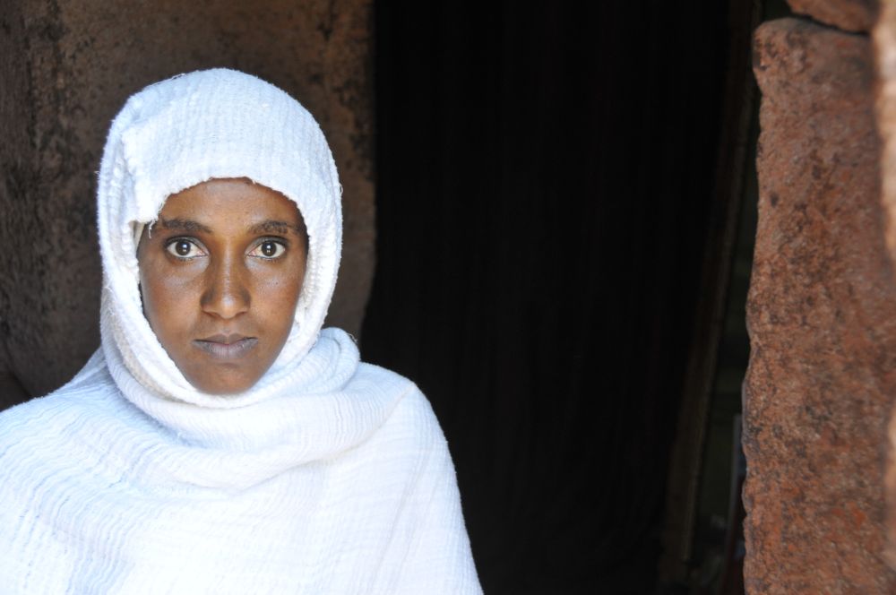 在拉利贝拉岩石教堂的女大学生泽娜布。