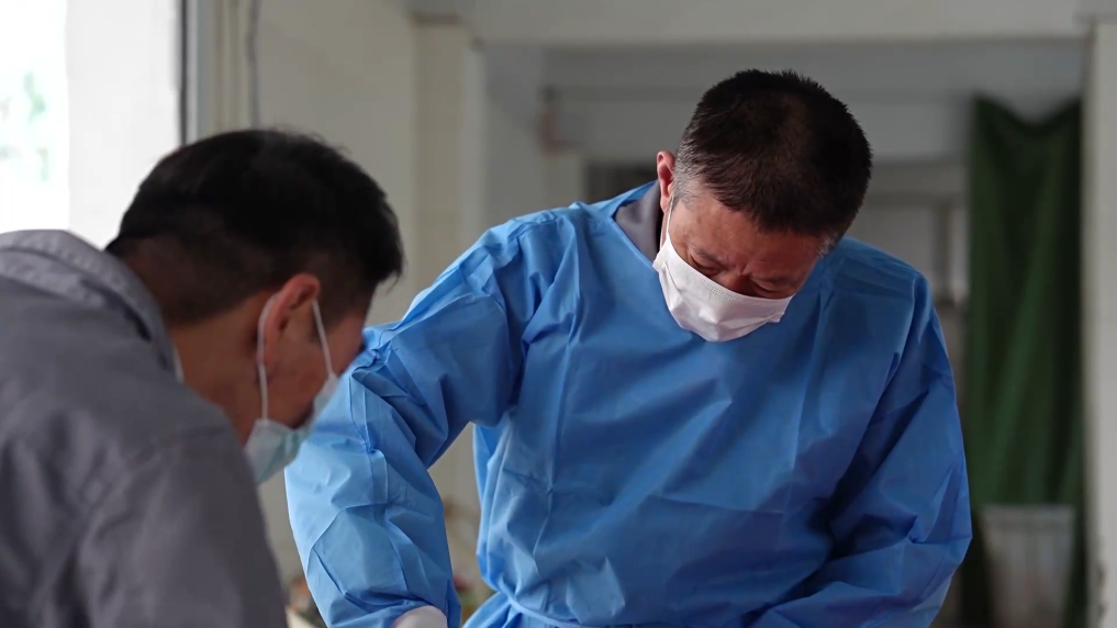 在淮北市殡仪馆业务部整容间,李青正带领徒弟为一位因车祸而离世的老人整理遗容。消毒擦拭、扑粉底、修复填充伤口……
