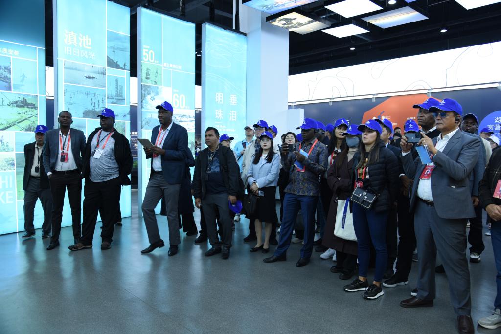 11月19日,外宾在滇池保护治理科普中心参观。新华社记者熊轩昂 摄