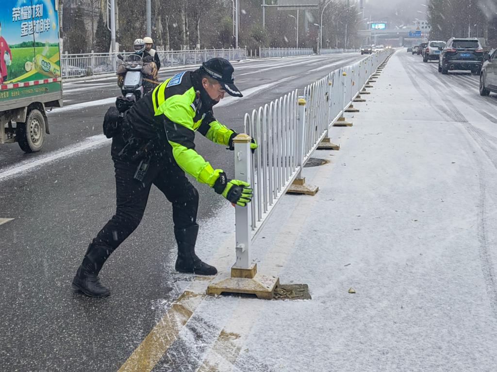 24日早晨,西宁市主城区迎来了入冬以来最强降雪。在市区坡度较大的路段和车辆转弯路口,记者看到,当地交警采取临时交通管制等措施,保障市民出行安全。